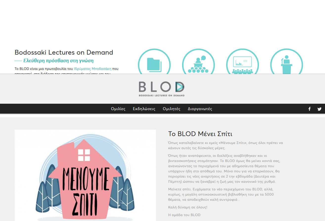 Το ίδρυμα ΜΠΟΔΟΣΑΚΗ «μπαίνει σπίτι μας» και μας κρατά μέσα μια μοναδική ηλεκτρονική βιβλιοθήκη διαλέξεων σημαντικών Ελλήνων και ξένων από το χώρο της επιστήμης, της τέχνης και των ιδεών!