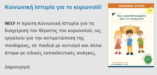 Η πρώτη Κοινωνική Ιστορία για τη διαχείριση του θέματος του κορωνοϊού, ως εργαλείο για την αντιμετώπιση της πανδημίας, σε παιδιά με αυτισμό και άλλα άτομα με ειδικές εκπαιδευτικές ανάγκες.
