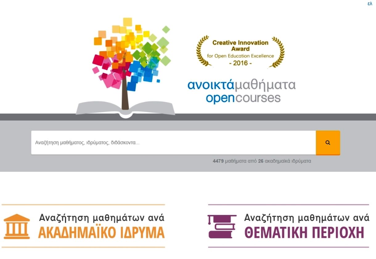 Μαθήματα που διδάσκονται στα Πανεπιστήμια και στα ΤΕΙ, ελεύθερα προσβάσιμα και δωρεάν διαθέσιμα στο Διαδίκτυο για όλους. Απαιτείται εγγραφή.