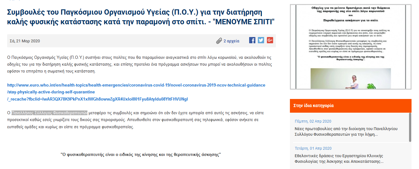 ΜΕΝΟΥΜΕ ΣΠΙΤΙ αλλά παραμένουμε δραστήριοι και βελτιώνουμε την φυσική μας κατάσταση με συμβουλές από τον Παγκόσμιο Οργανισμό Υγείας.